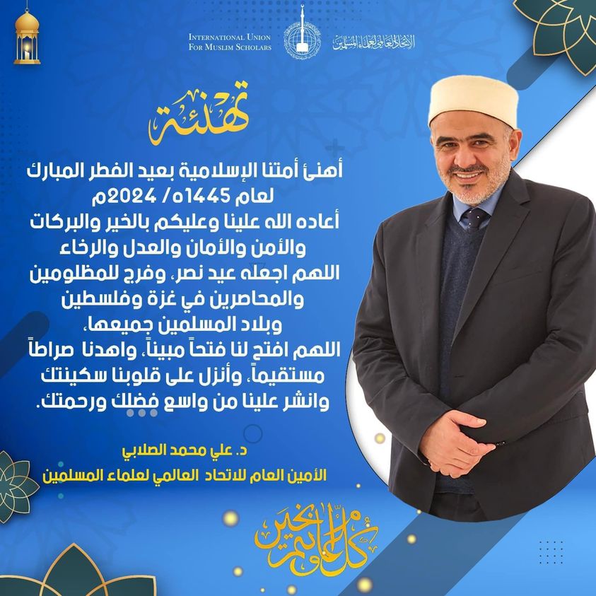 أهنئ أمتنا الإسلامية بعيد الفطر المبارك لعام 1445ه/ 2024م أعاده الله علينا وعليكم بالخير والبركات، والأمن والأمان والعدل والرخاء