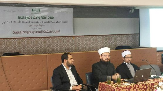 يقدم الشيخ الدكتور علي القره داغي – الأمين العام للاتحاد العالمي لعلماء المسلمين وخبير الاقتصاد والصيرفة الإسلامية – محاضرة للأئمة والدعاة في ألمانيا تحت عنوان “الصيرفة الإسلامية .. المبادئ والأسس وال