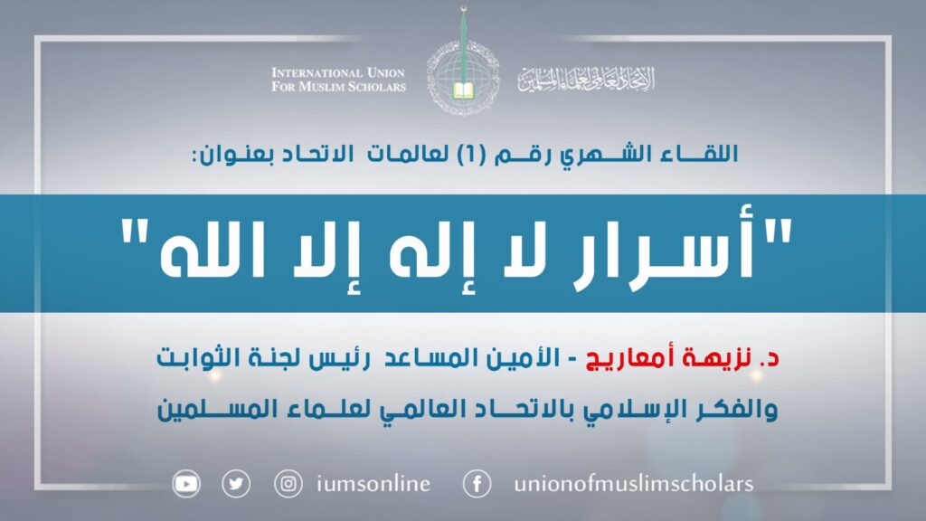 محاضرة علمية قيمة قدمتها د. نزيهة أمعاريج عضو الأمانة العامة للاتحاد، بعنوان؛ “أسرار لا إله إلا الله”، وذلك في فقرة اللقاء الشهري لعالمات الاتحاد العالمي لعلماء المسلمين