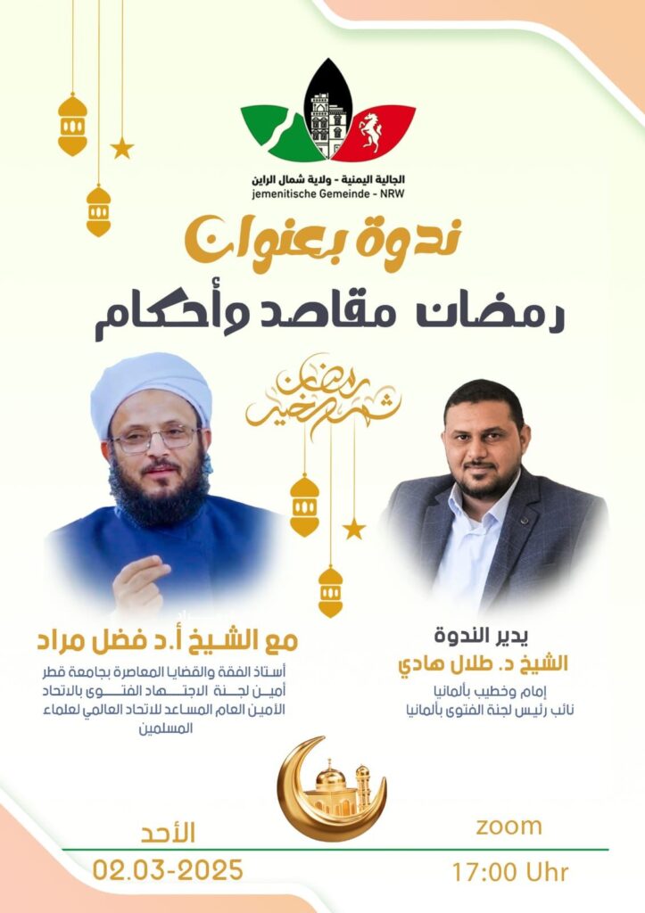 الأمين العام المساعد للاتحاد العالمي لعلماء المسلمين الشيخ الدكتور فضل مراد يقدم محاضرة عبر الزووم للجالية العربية في ألمانيا حول “مقاصد الصيام وأحكامه”