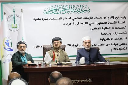 أقام فرع إقليم كردستان للاتحاد العالمي لعلماء المسلمين، الثلاثاء 29 مارس الجاري، ندوة علمية حول المعاملات المالية المعاصرة، قدمها فضيلة الشيخ الدكتور علي القره داغي الأمين العام للاتحاد