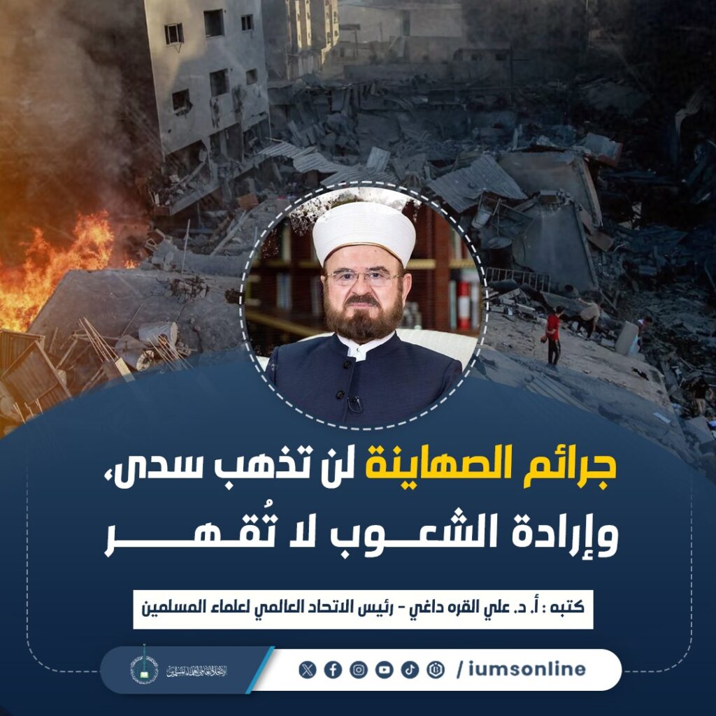 جرائم الصهاينة لن تذهب سدى، وإرادة الشعوب لا تُقهرالكاتب: أ. د. علي محيي الدين القره داغيرئيس الاتحاد العالمي لعلماء المسلمين هل دماؤنا ماء بارد؟؟ ودماءُ الصهاينة ذهب سابك؟وهل إحساس أمتنا…