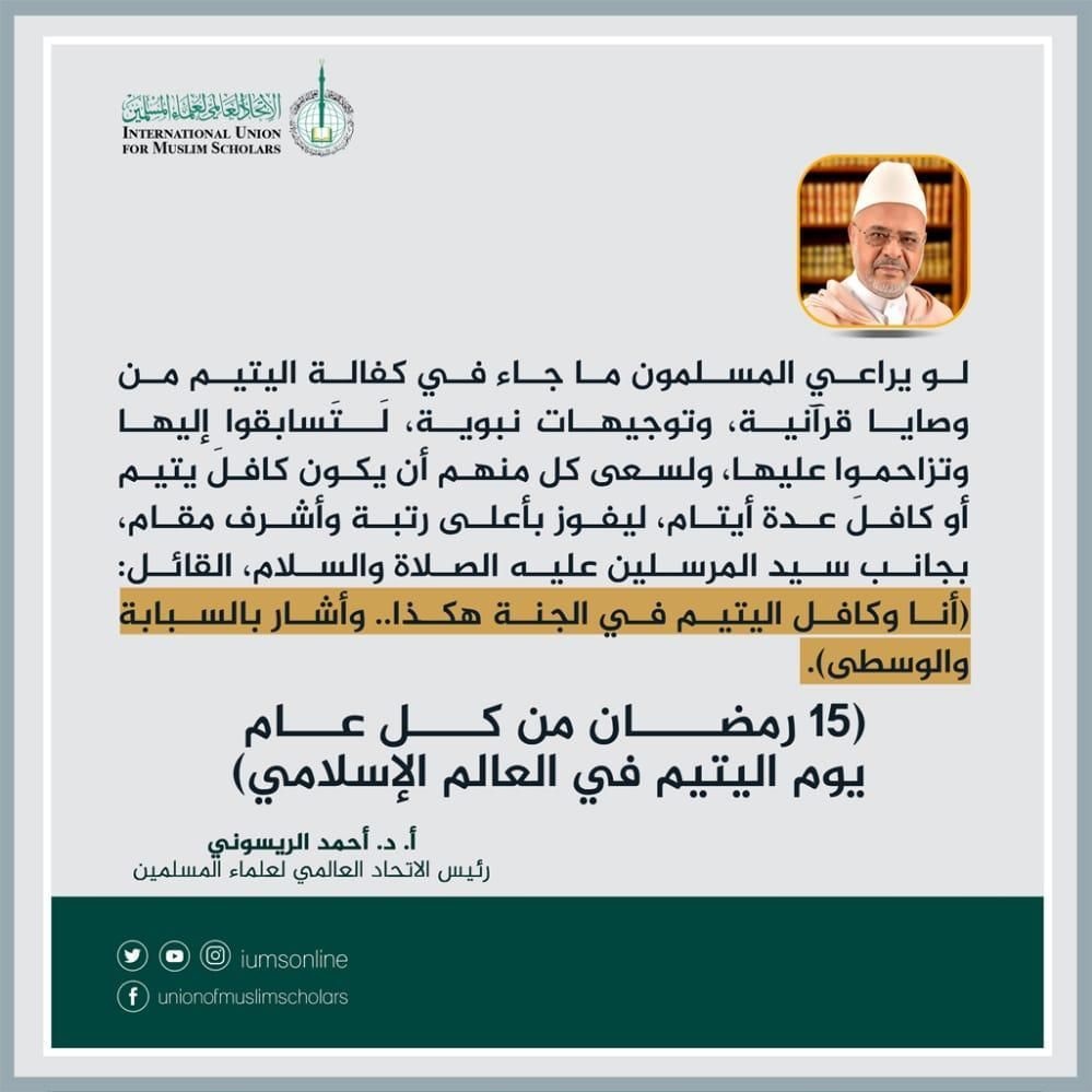 الريسوني والقره داغي يؤكدان على رعاية الإسلام وعنايته بالأيتام.. والتعاون الإسلامي: تجدد الدعوة للتوعية بقضايا الأيتام واحتياجاتهم