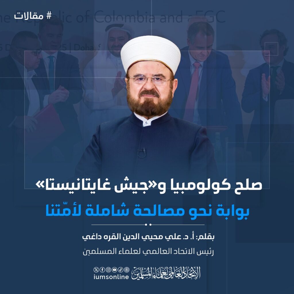 نُحيي نجاح الصلح بين: كولومبيا وجماعة جيش غايتانيستا (EGC)، وندعو إلى الصلح بين جميع مكونات أمتنا