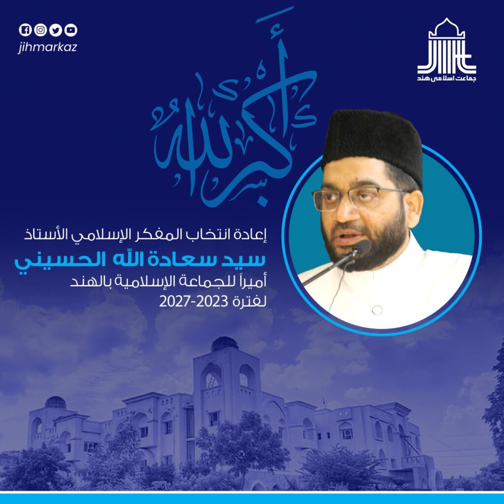29 اپریل بروز ہفتہ نئی دہلی میں ایک میٹنگ کے دوران، جماعت اسلامی ہند کی نمائندہ کونسل (جس میں 22 ریاستوں کے 162 ممبران شامل ہیں، جن میں 36 خواتین شامل ہیں) نے اسلامی مفکر انجینئر سید سعادت اللہ حسینی کو دوبارہ اپنا امیر منتخب کرلیا