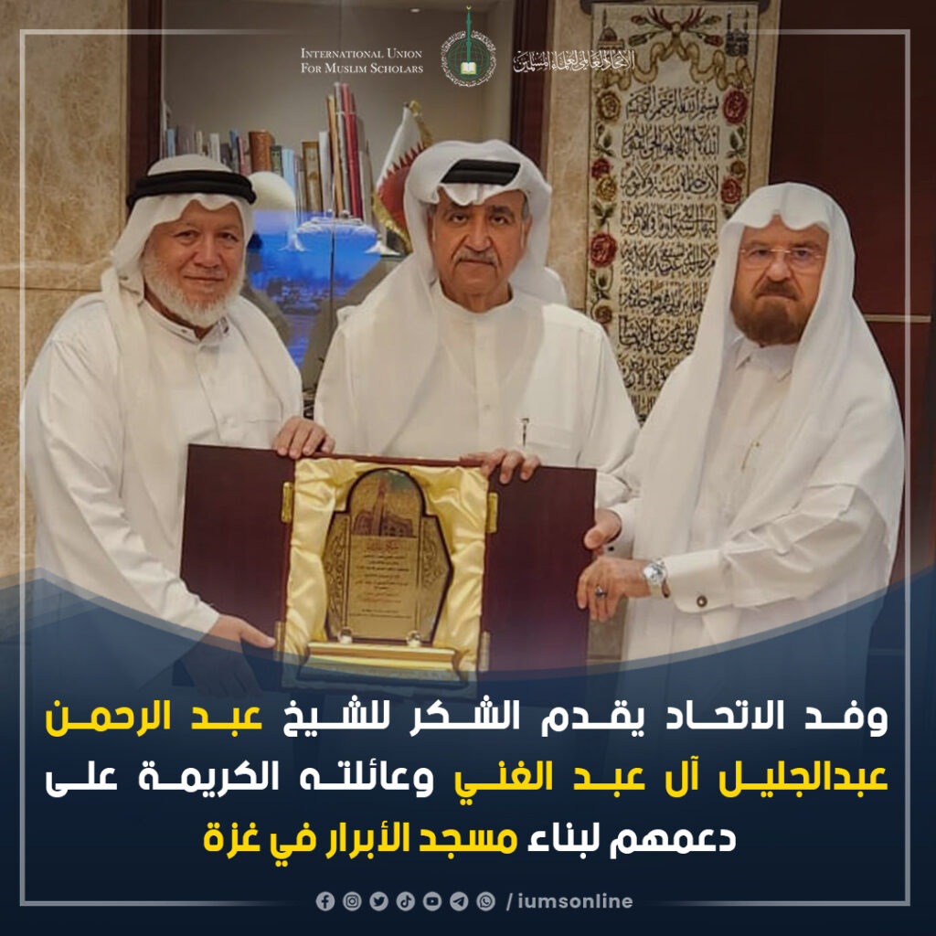 یونین کا وفد، غزہ میں مسجد ابرار کی تعمیر میں تعاون کے لیے شیخ عبدالرحمن عبدالجلیل آل عبدالغنی اور ان کے معزز خانوادہ کا شکریہ ادا کرتا ہے۔