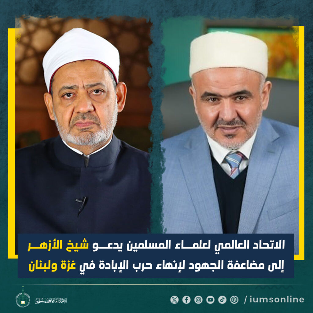 عالمی اتحاد برائے مسلم اسکالرز نے شیخ الازہر سے غزہ اور لبنان میں نسل کشی کی جنگ کو ختم کرنے کے لیے کوششیں تیز کرنے کی اپیل کی.