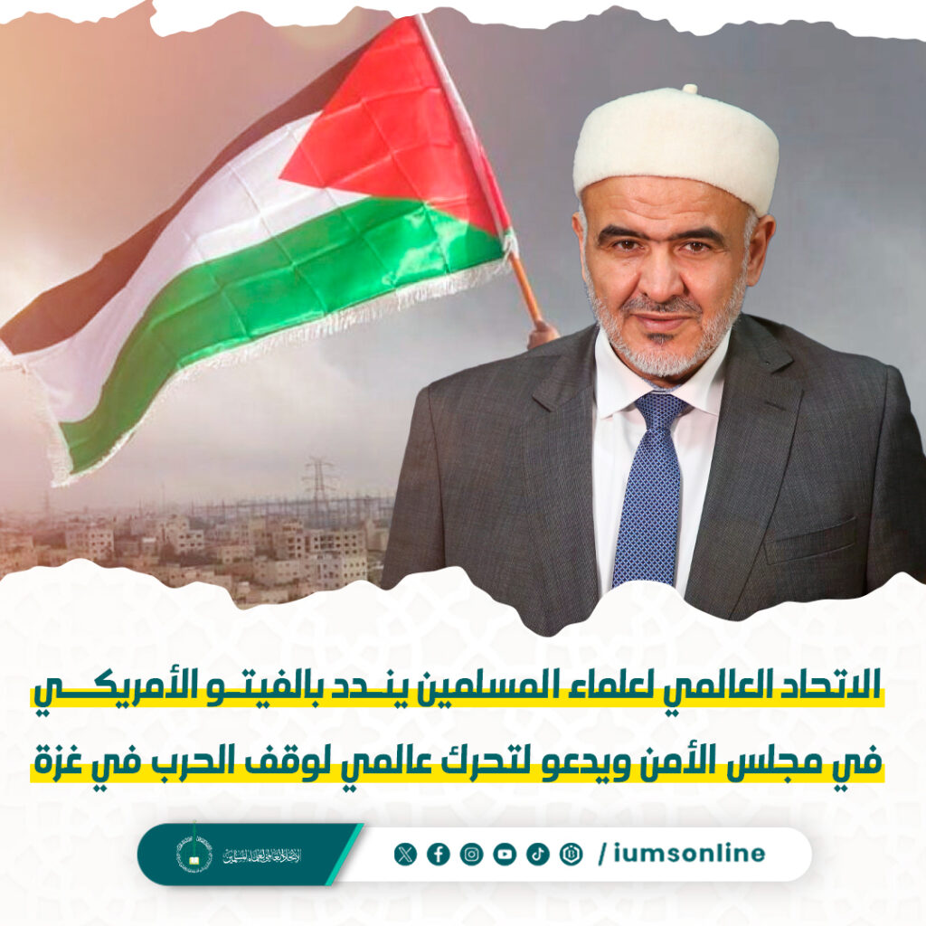 اتحاد عالمی برائے مسلم اسکالرز نے اقوام متحدہ کی سلامتی کونسل میں امریکی ویٹو کی سخت مذمت کی ہے اور غزہ میں جنگ کو روکنے کے لیے عالمی اقدام کی اپیل کی ہے۔
