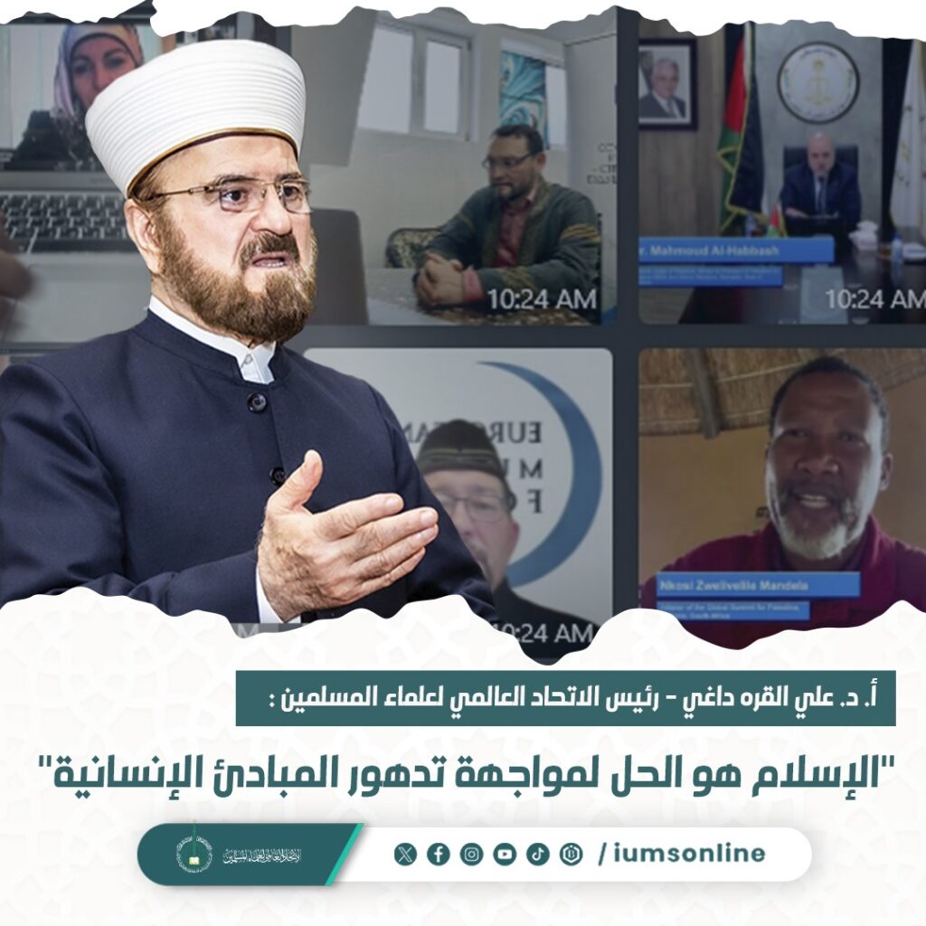 شیخ علی قرہ داغی، صدر عالمی اتحاد برائے مسلم علماء، نے کہا: “انسانی اصولوں کے زوال کا مقابلہ کرنے کے لیے اسلام ہی واحد حل ہے۔”